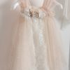 Βαπτιστικό φόρεμα Piccollino Tuliana Chocco . Φόρεμα σε ριχτη γραμμή απο δαντέλα, με κομάτια απο σοκολά τούλι με χρυσό γκλίτερ τα οποία αποτελούν τις τιράντες και την προέκταση τους εμπρός και πίσω. Το ντεκόρ του φορέματος αποτελείται απο 22 χειροποίητα λουλούδια, δαντέλες και κορδέλες . Το φόρεμα συνοδέυεται απο μπαντάνα με ντεκόρ όμοιο με το φόρεμα. Διαθέσιμο σε 3 μεγέθη: 6-12, 12-18, 18-24,24-36(εξτρά χρέωση)