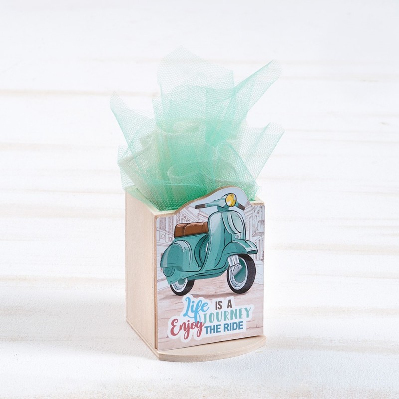 Ξύλινη μολυβοθήκη σε natural χρώμα. Διακοσμημένο με κοπτικό Βέσπα.