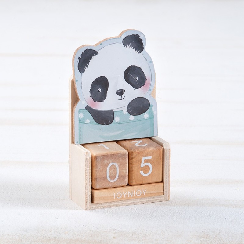 Ξύλινο ημερολόγιο με κύβους σε natural χρώμα. Διακοσμημένο με κοπτικό Panda.