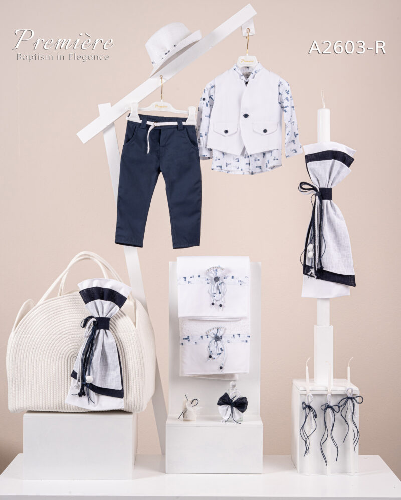 Βαπτιστικό πακέτο Premiere A2601 περιλαμβάνει κοστούμι ,σετ λαδόπανα, λαμπάδα, λαδοσετ και στολισμένη τσάντα ropes