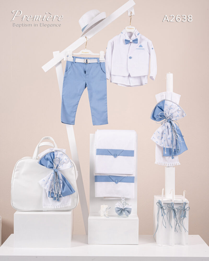 Βαπτιστικό πακέτο Premiere A2601 περιλαμβάνει κοστούμι ,σετ λαδόπανα, λαμπάδα, λαδοσετ και στολισμένη τσάντα
