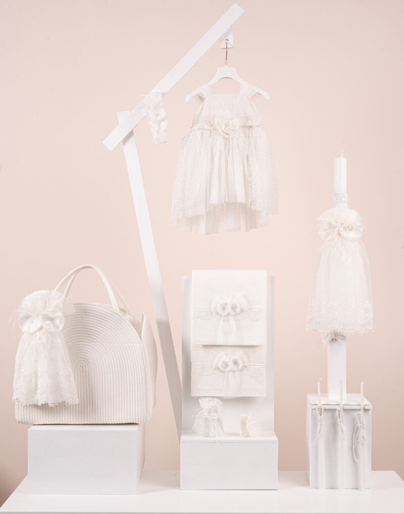 Βαπτιστικό πακέτο Premiere K2615 περιλαμβάνει φόρεμα ,σετ λαδόπανα, λαμπάδα, λαδοσετ και στολισμένη τσάντα ropes